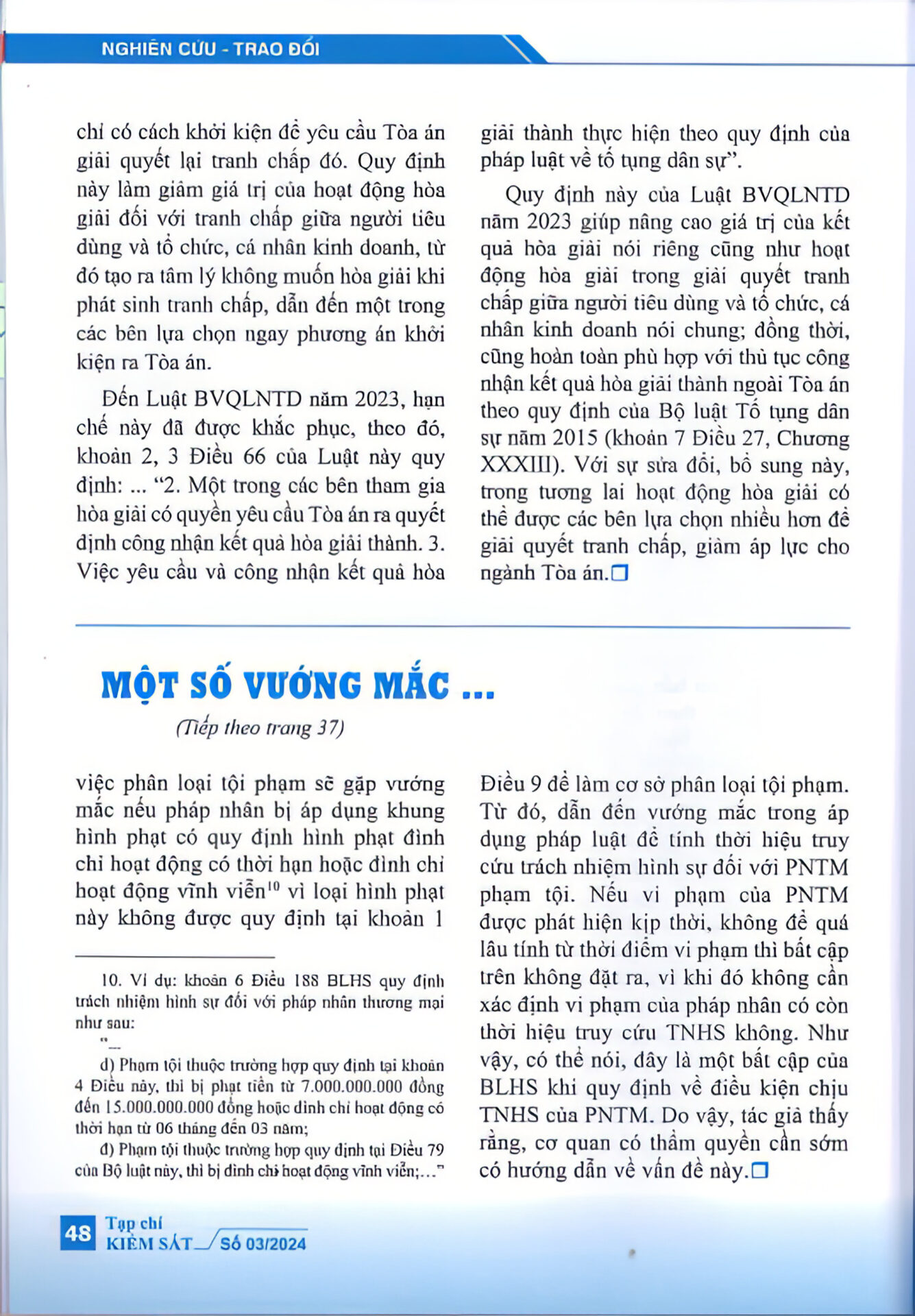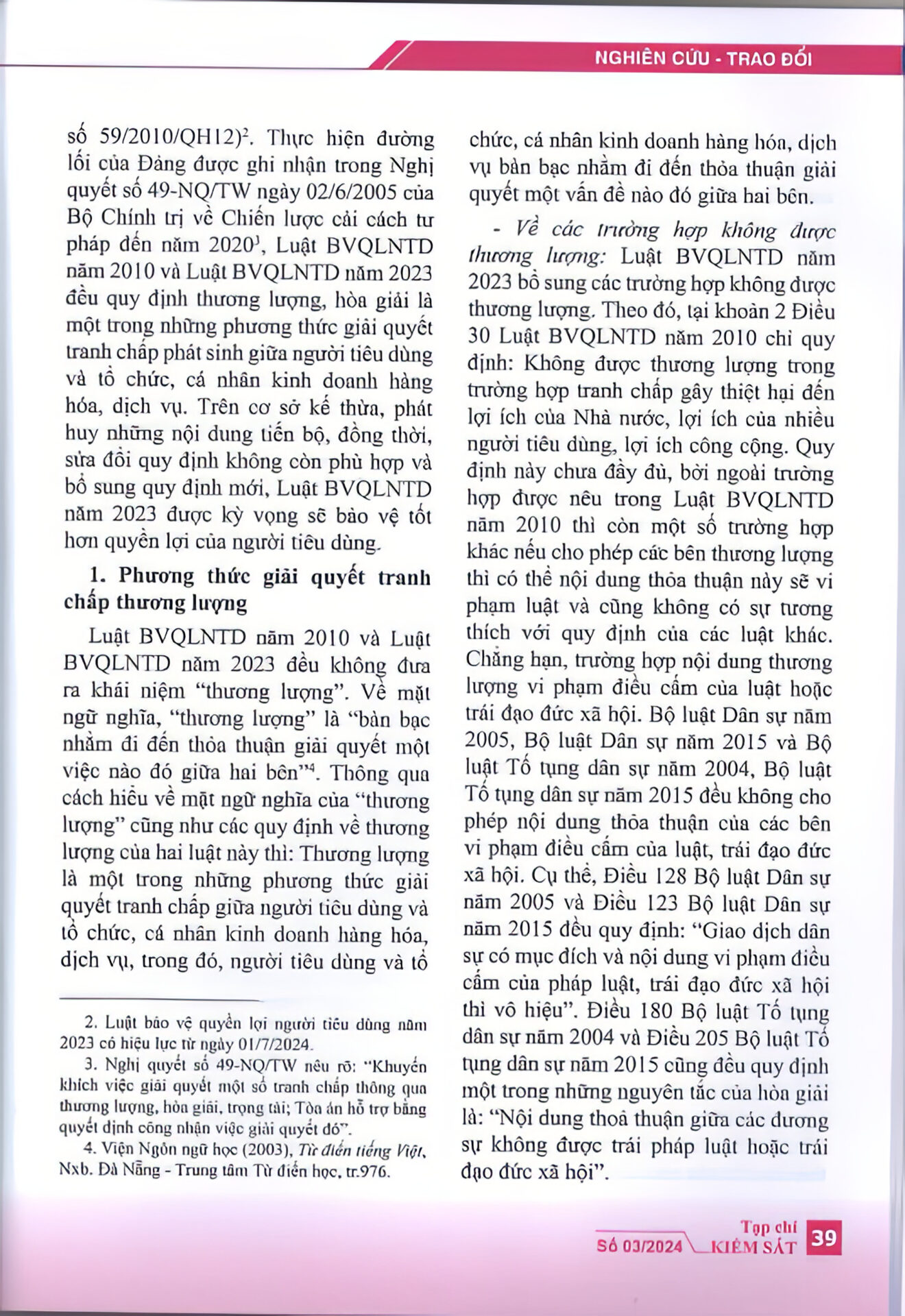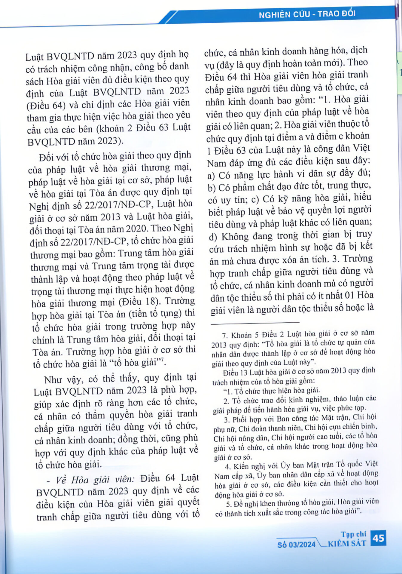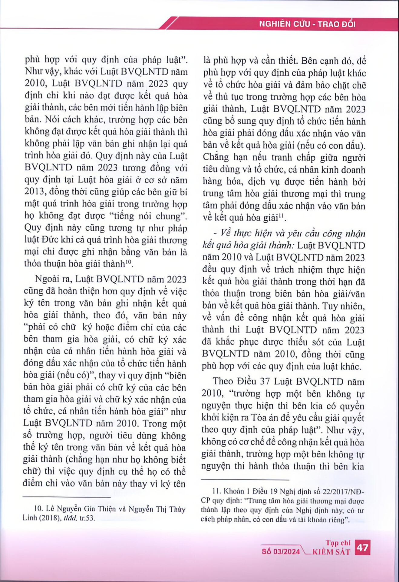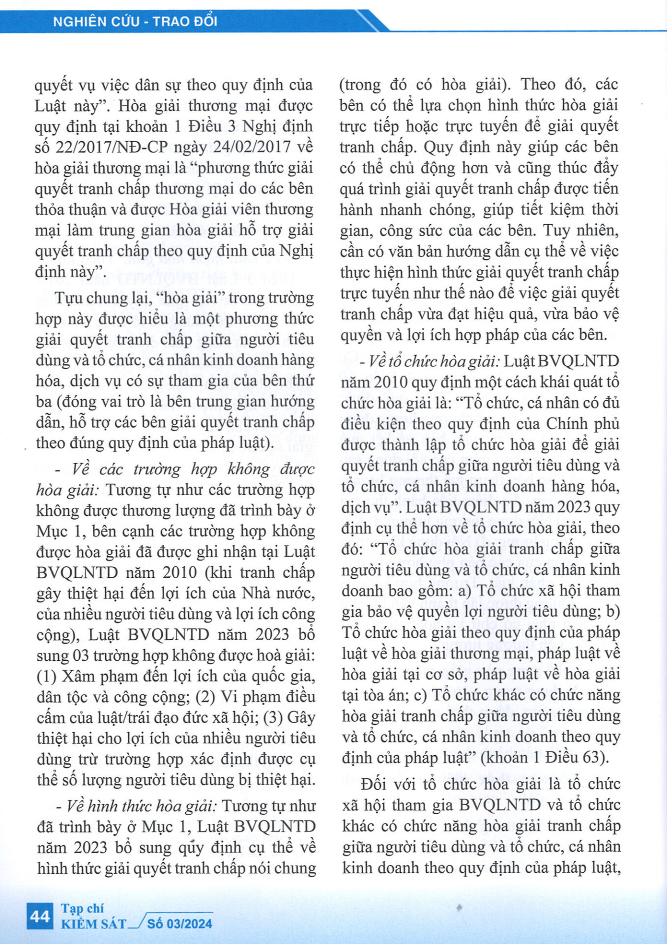 “Luật bảo vệ quyền lợi người tiêu dùng năm 2023 đã khắc phục được một số bất cập của Luật bảo vệ quyền lợi người tiêu dùng năm 2010 về thương lượng, hòa giải trong giải quyết tranh chấp giữa người tiêu dùng với tổ chức, cá nhân kinh doanh hàng hóa, dịch vụ; góp phần hoàn thiện hơn cơ sở pháp lý về hoạt động thương lượng, hòa giải trong giải quyết tranh chấp giữa người tiêu dùng với tổ chức, cá nhân kinh doanh hàng hóa, dịch vụ.” – trích Tạp chí Kiểm sát.